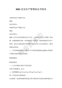 2021安全生產(chǎn)管理協(xié)議書范本